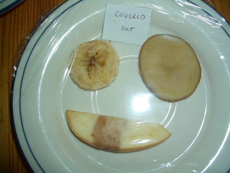 We observed that the potato and apple were slightly browner.