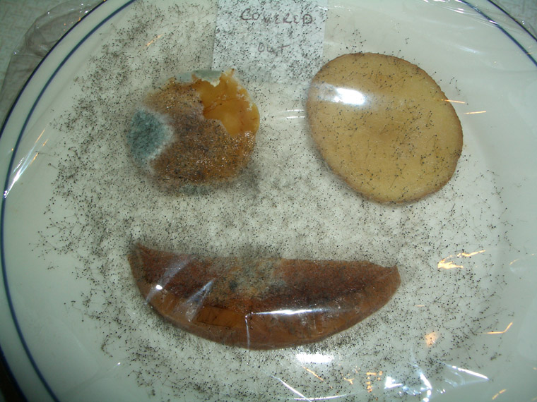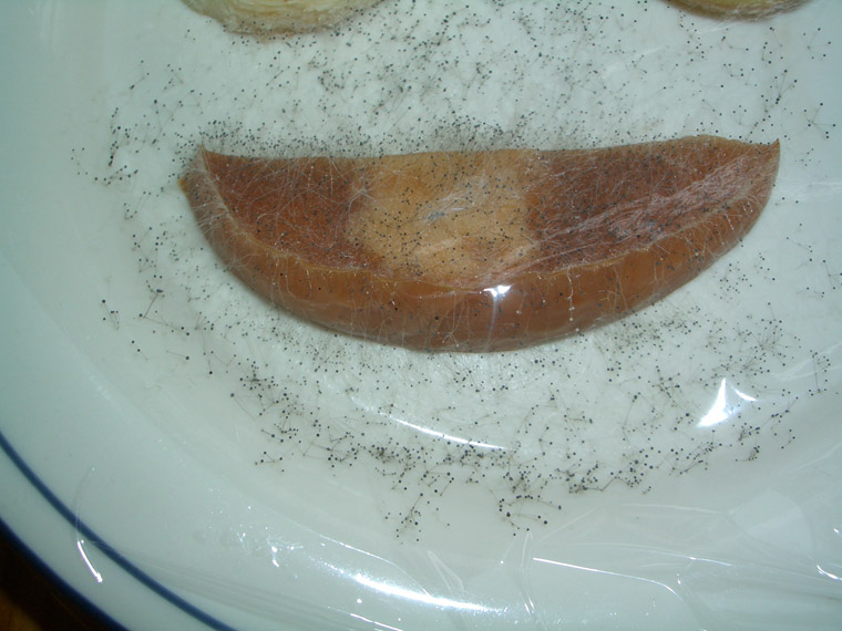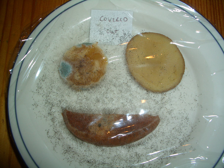 The first photo is a plate on January 31 at the beginning of the experiment. The remaining photos on this page are of the covered, unrefrigerated plate.